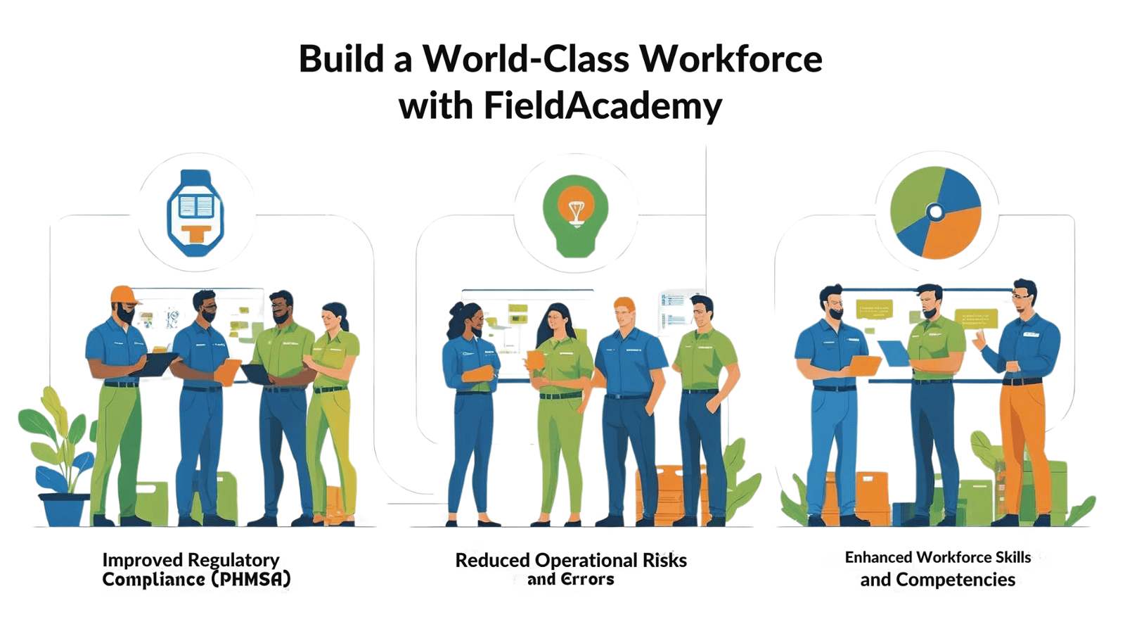 Build a world-class workforce through our FieldAcademy programs. We deliver comprehensive technical training aligned with PHMSA regulatory standards, significantly improving operational compliance, reducing risks, and cultivating workforce excellence tailored to the needs of the U.S. energy sector.